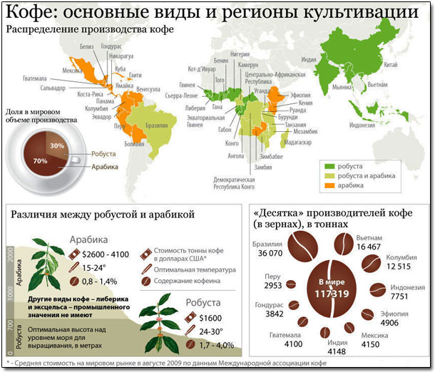 этого вида приходится не более 30 % мировых посадок. Кофе робуста чаще всего